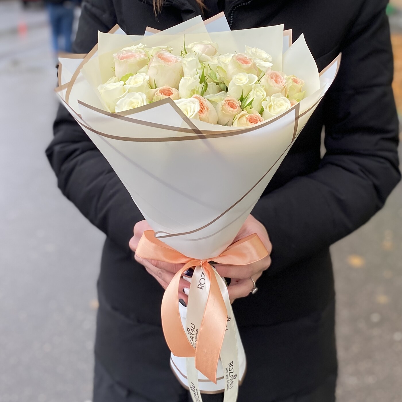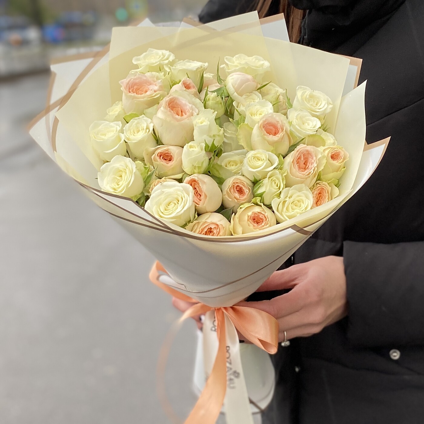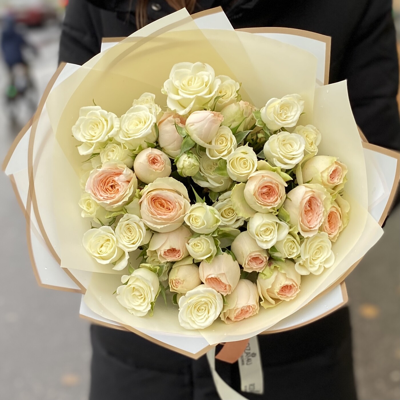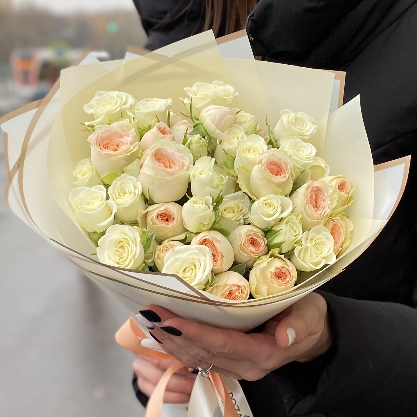 Нежный букет из пионовидных кустовых роз. Подарите нежность своим близким.