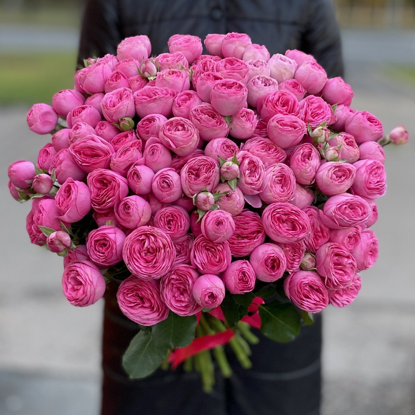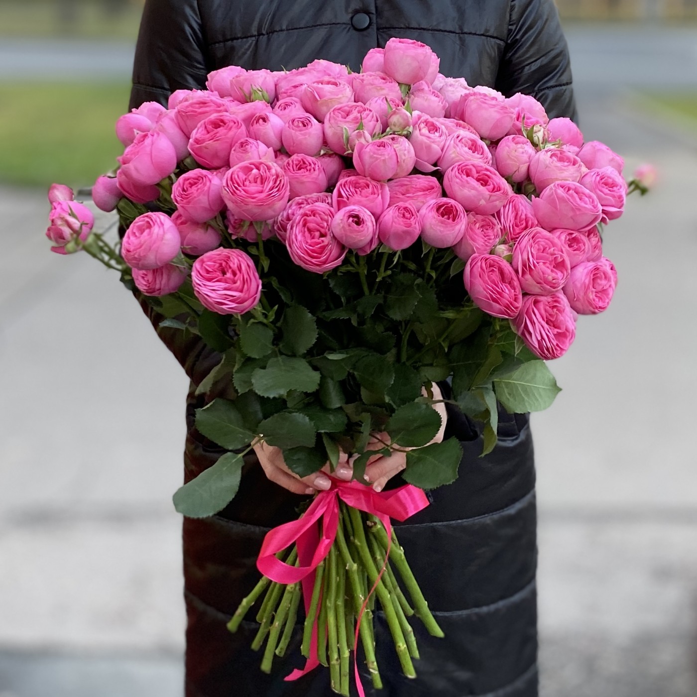 Анна о заказе: 51 малиновая розаСпасибо! Букет великолепный! Цветы свежайшие, упругие, очень красивые, крупные. Добавлено 4 коралловые розы и зелень