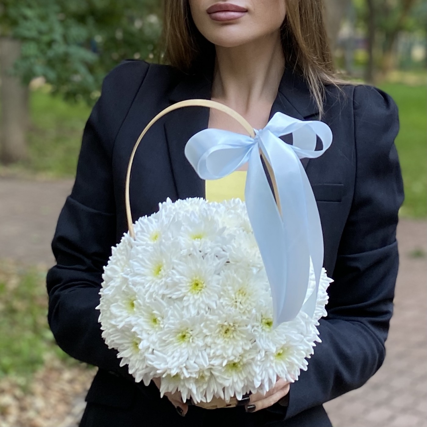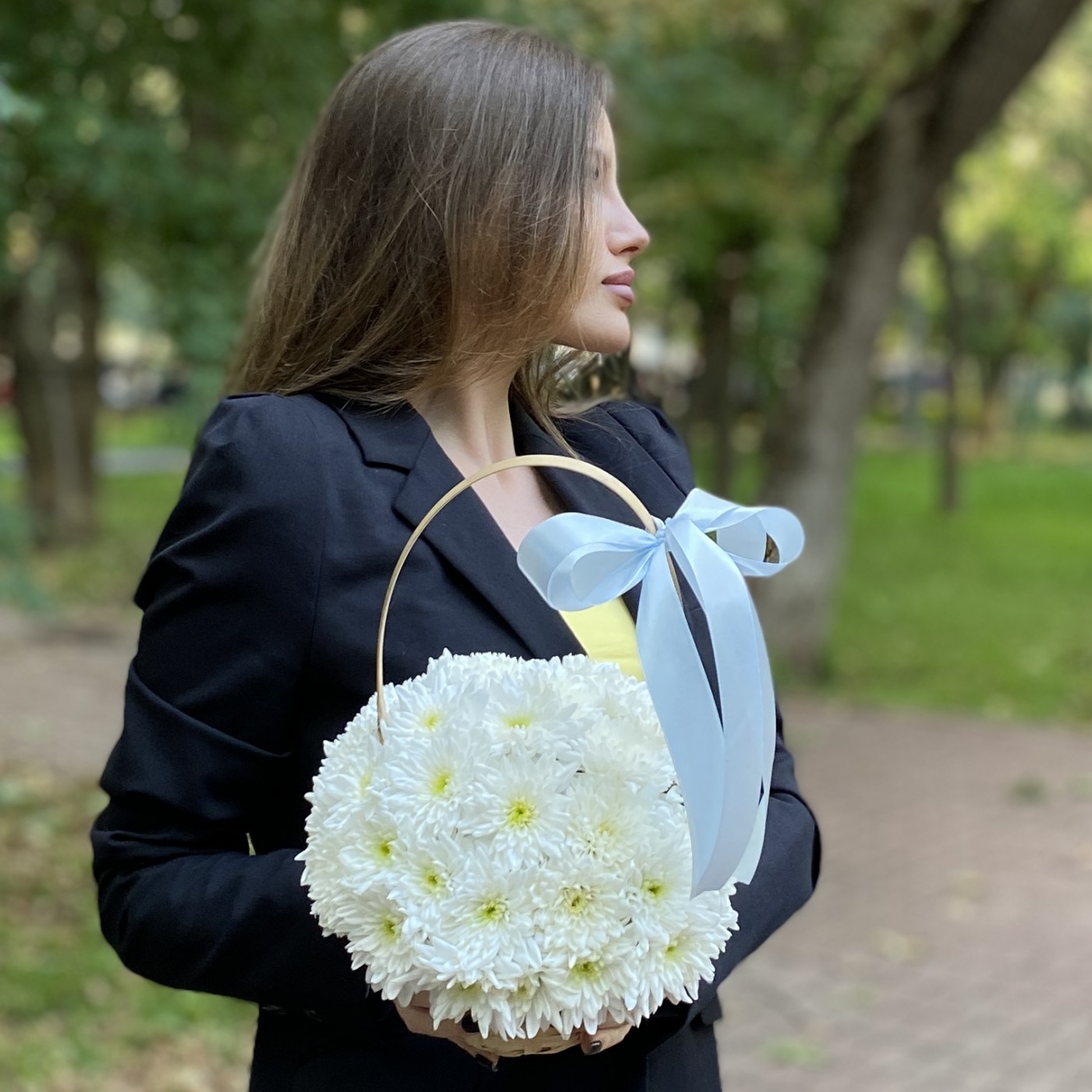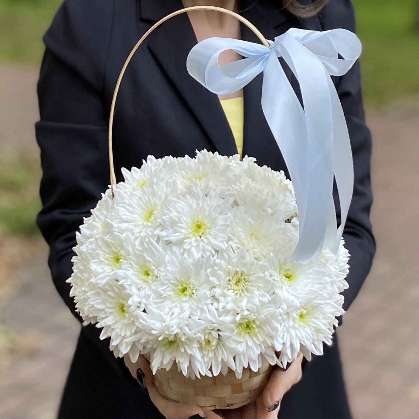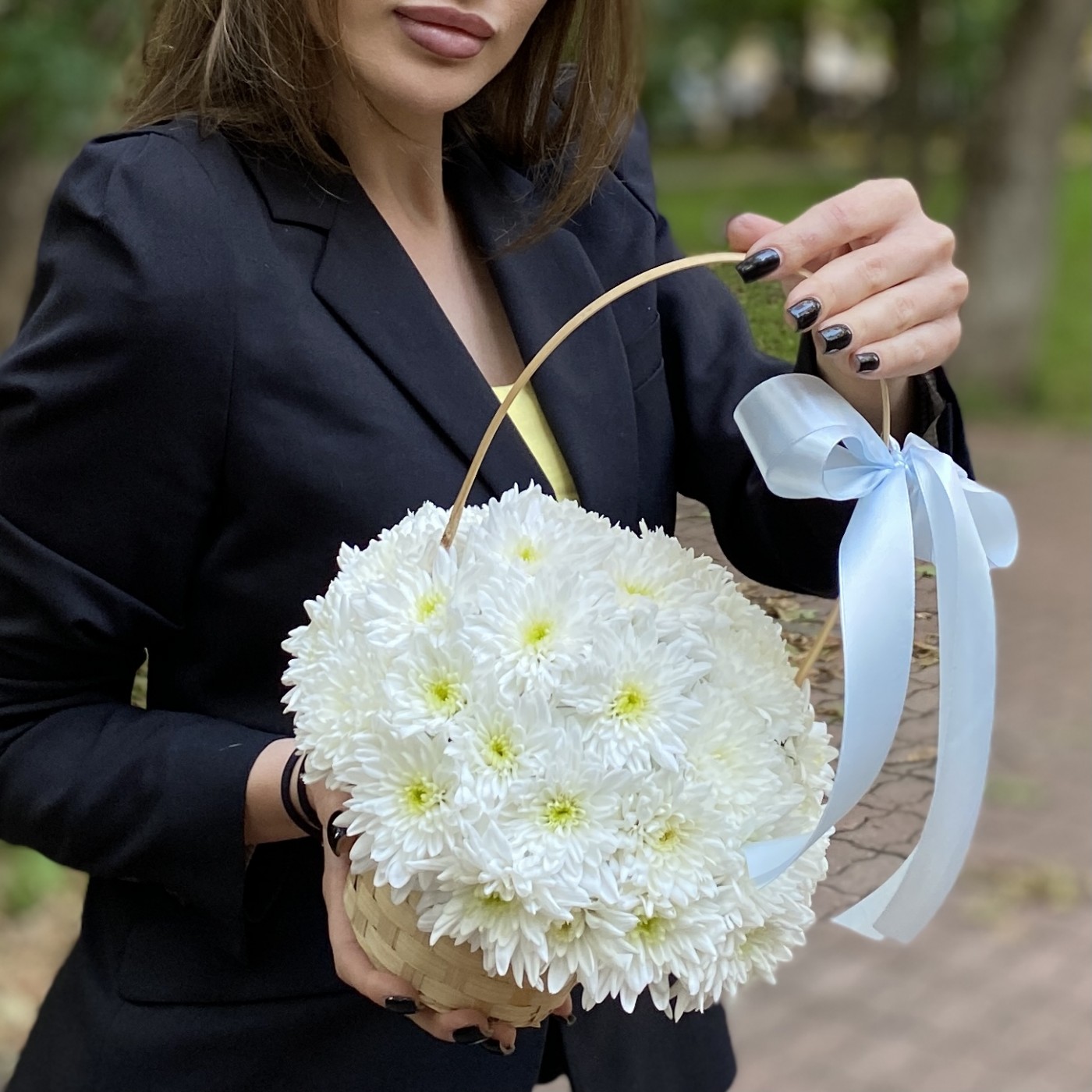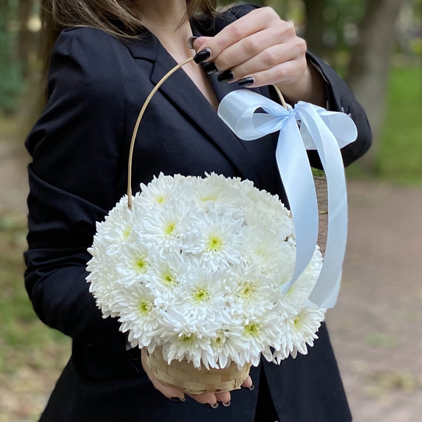 Нежная композиция в корзине из кустовой белой хризантемы сорта Балтика отличный подарок коллеге или подруге в день рождения. Доставка круглосуточно по Москве и области.
