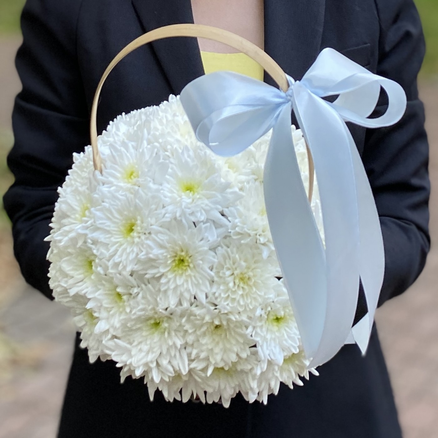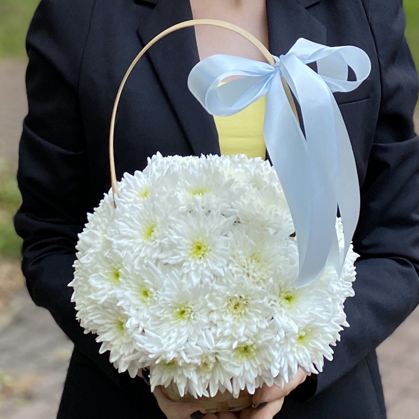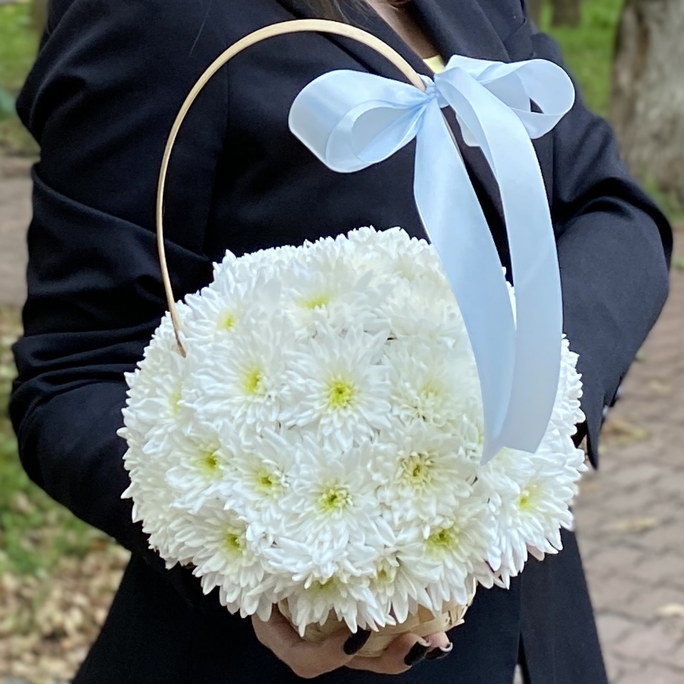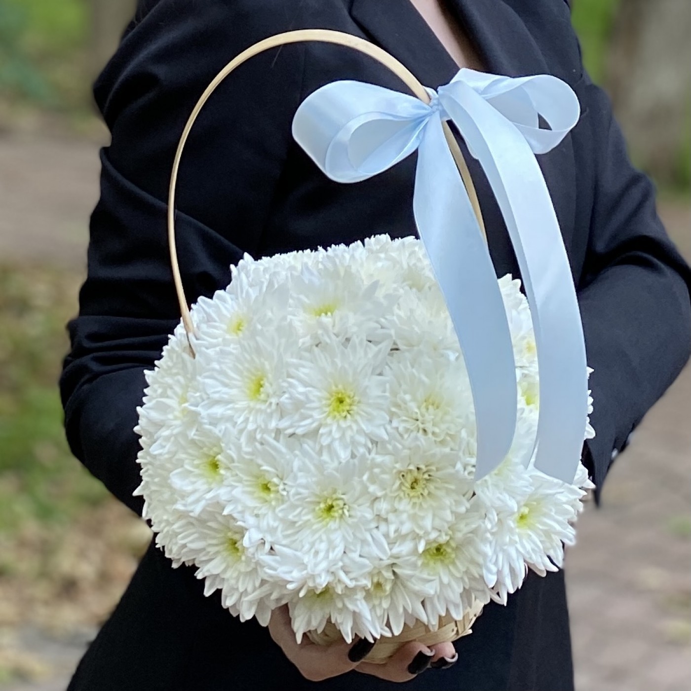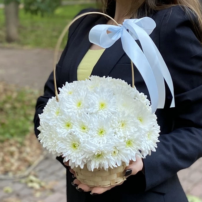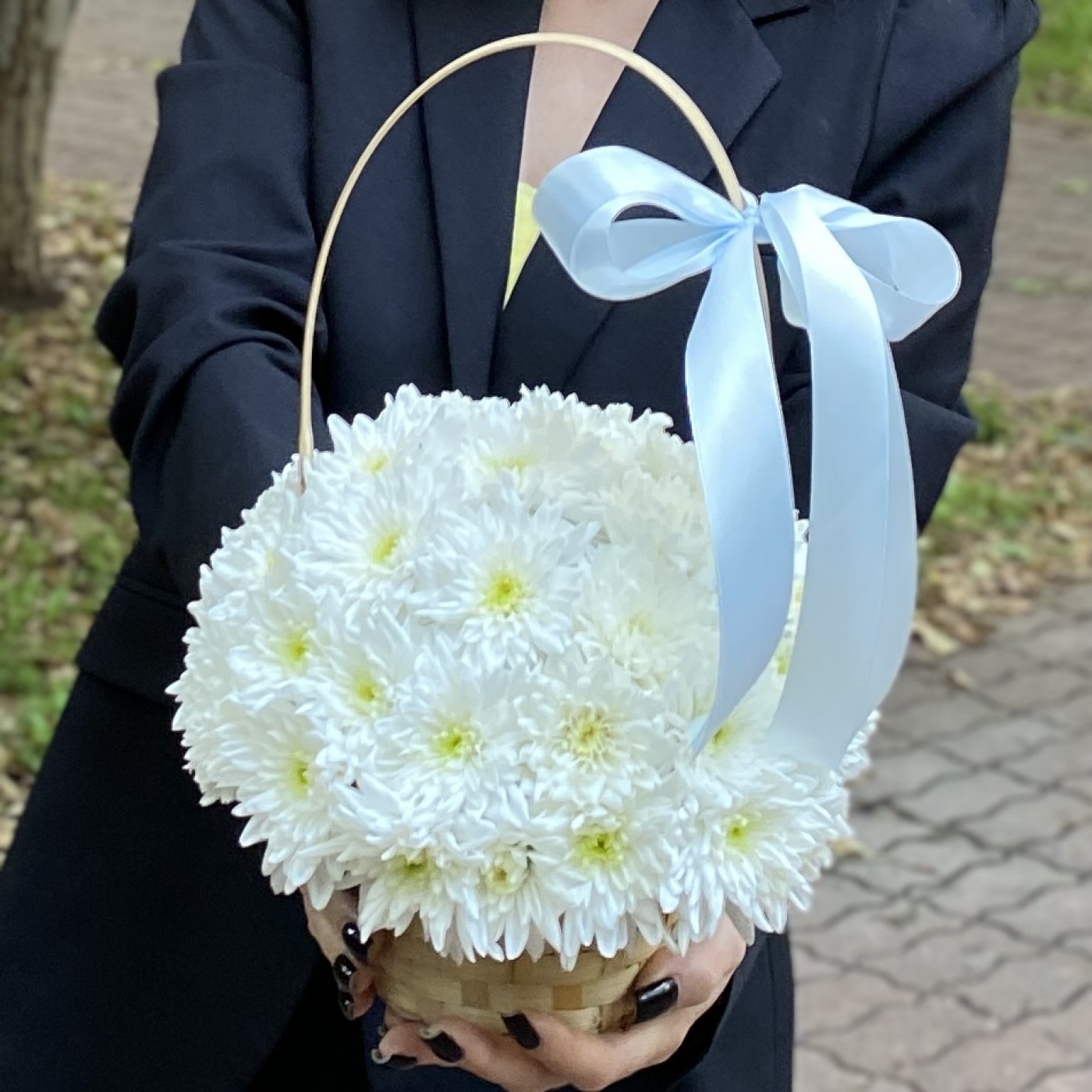 Нежная композиция в корзине из кустовой белой хризантемы сорта Балтика отличный подарок коллеге или подруге в день рождения. Доставка круглосуточно по Москве и области.