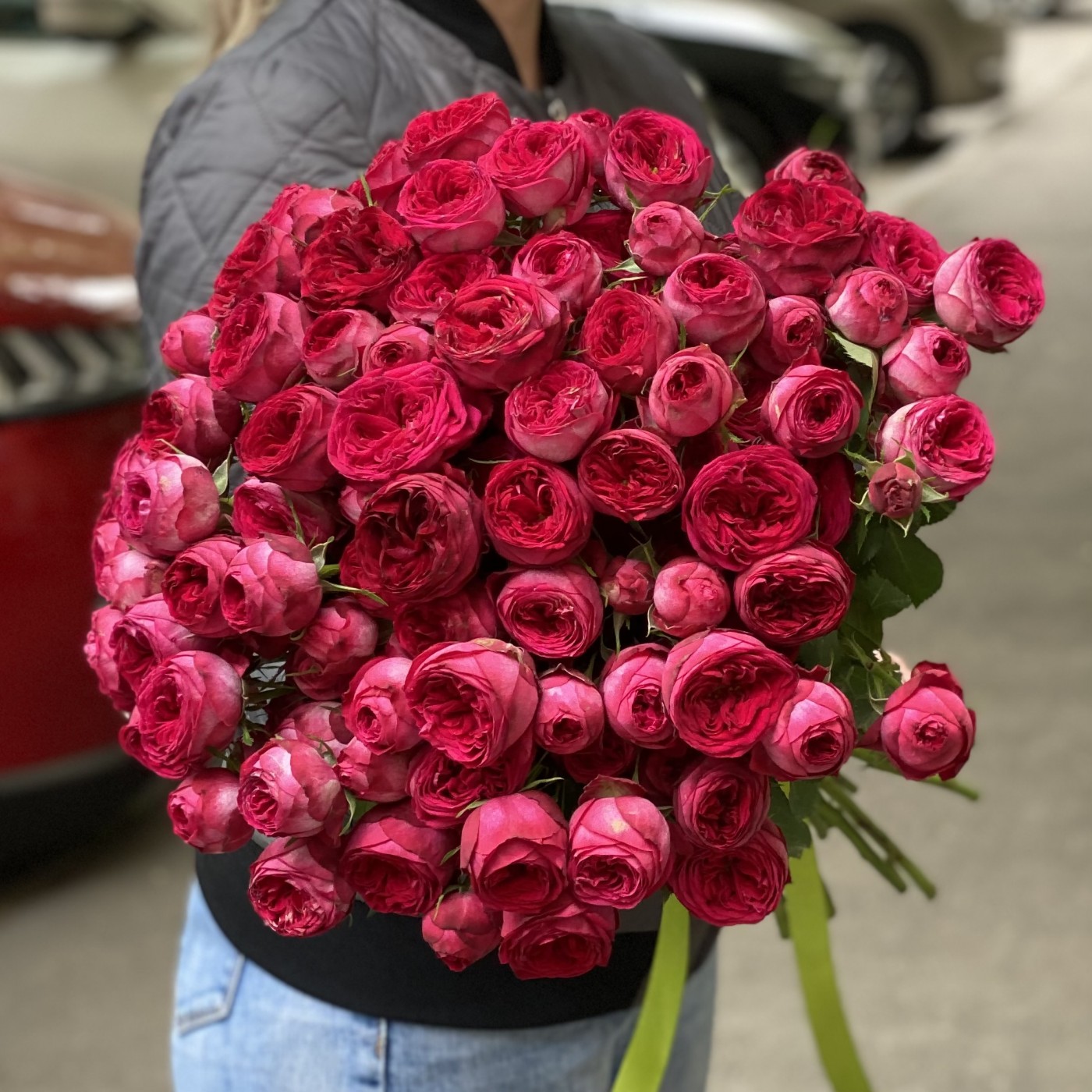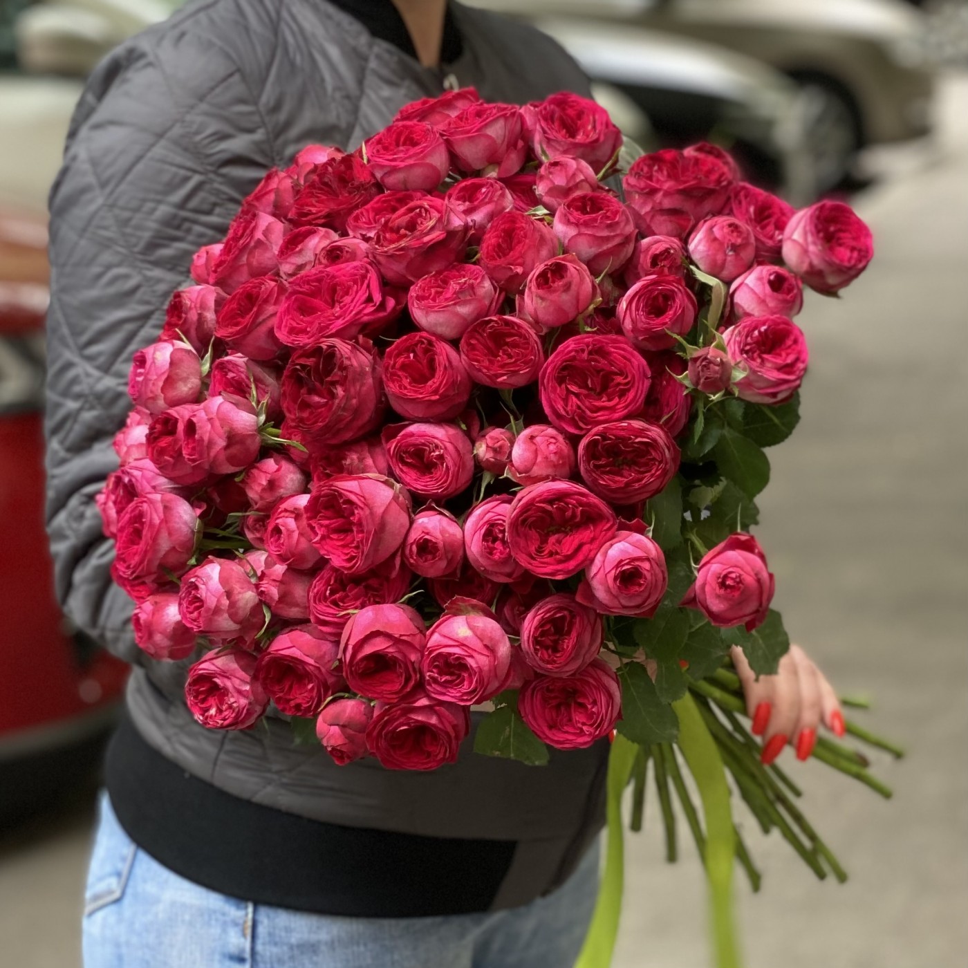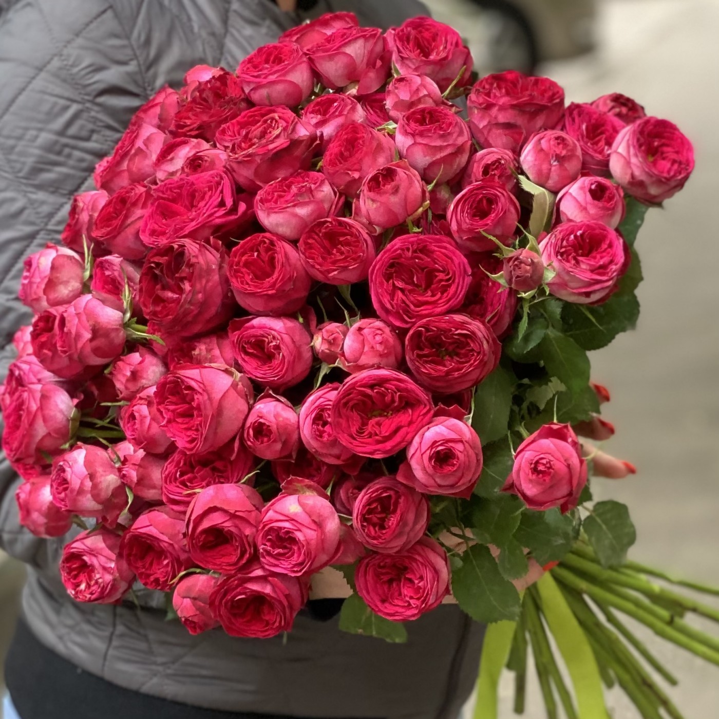 Анна о заказе: 51 малиновая розаСпасибо! Букет великолепный! Цветы свежайшие, упругие, очень красивые, крупные. Добавлено 4 коралловые розы и зелень