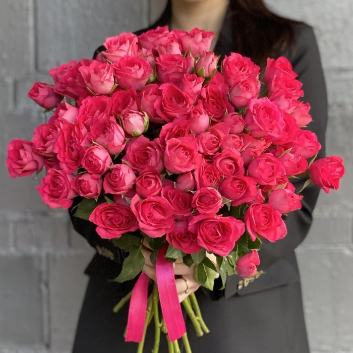 Кустовая пионовидная роза Беллалинда пинк малинового цвета произведет незабываемое впечатление на свою получательницу! Доставка букетов круглосуточно по Москве и области.