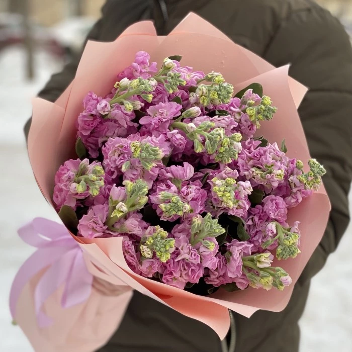 Букет из нежной и ароматной розовой маттиолы принесет весеннее тепло и радостное настроение даже в зимний день. Эти цветы станут прекрасным комплиментом женской красоте и расскажут о ваших светлых чувствах.