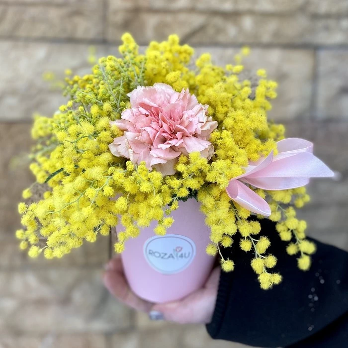 Небольшая весенняя композиция украсит ваш дом и принесет в него весеннее настроение. Ароматная мимоза - символ 8 марта и весны.
