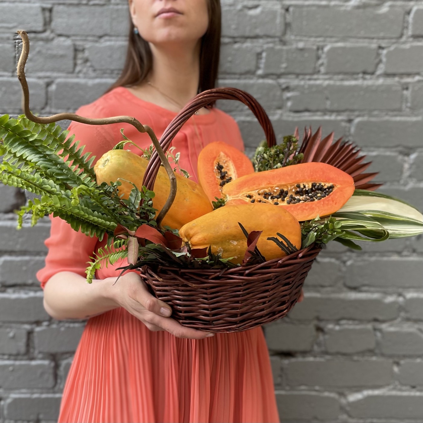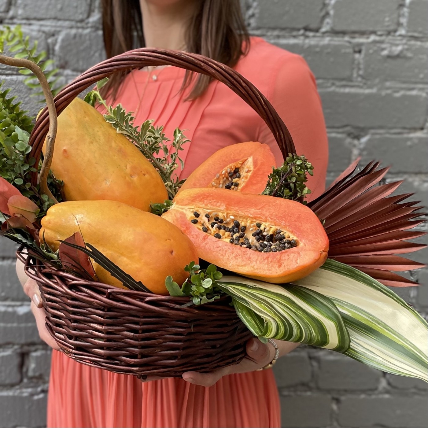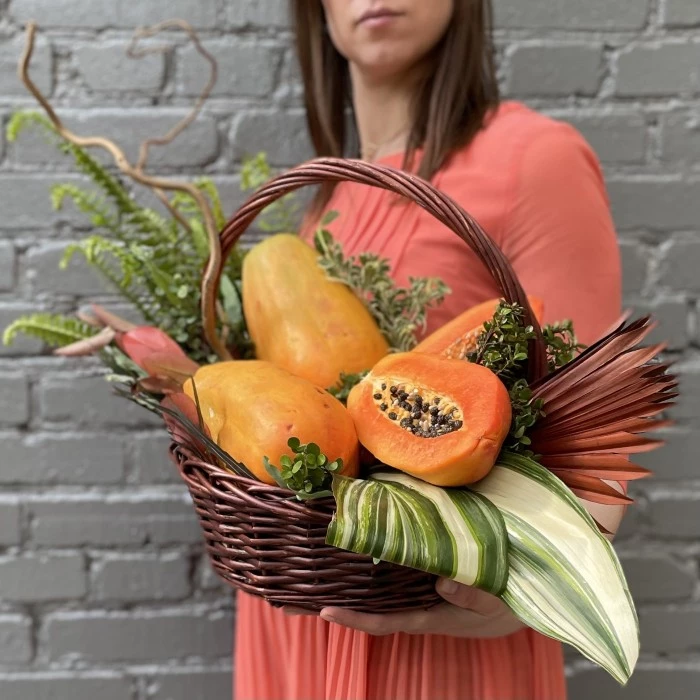 Яркая и необычная подарочная корзина с папайей. Удиви получателя экзотическим подарком.