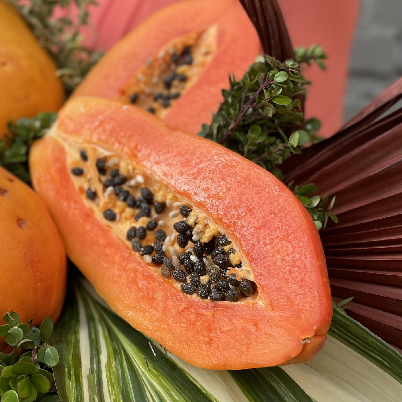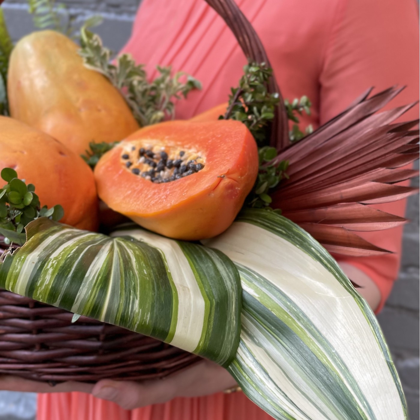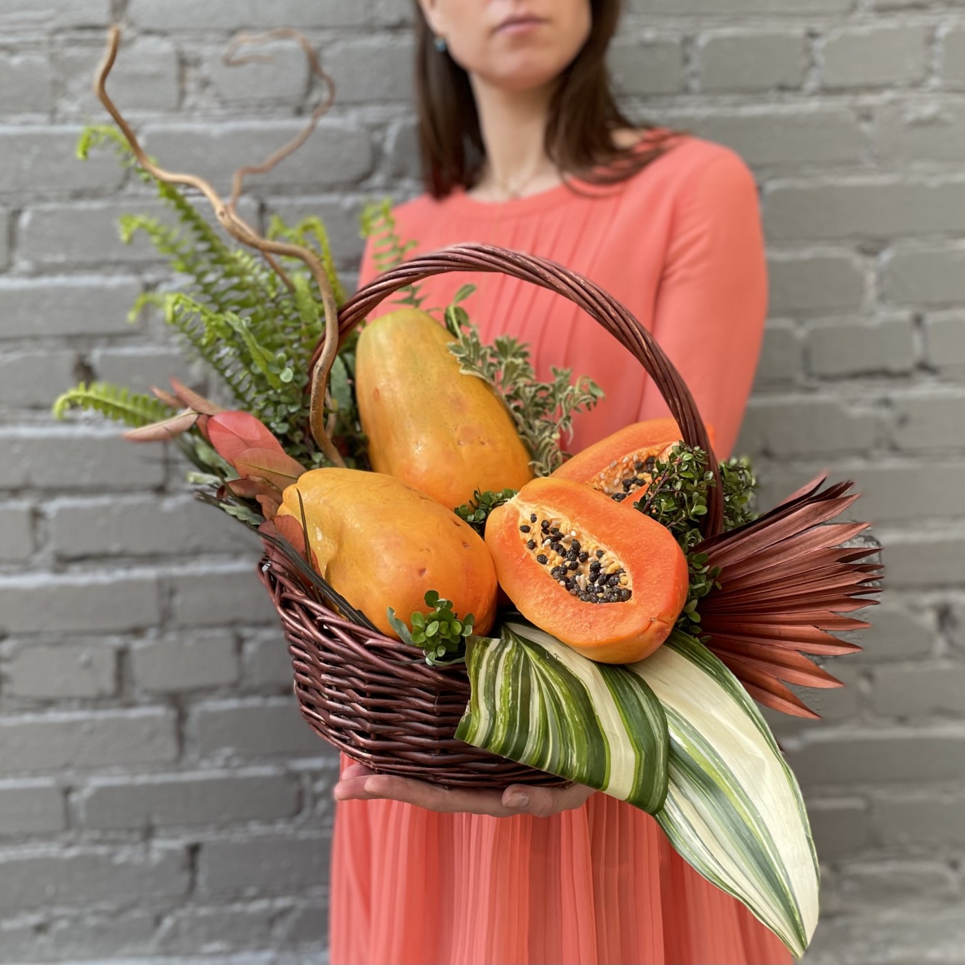 Яркая и необычная подарочная корзина с папайей. Удиви получателя экзотическим подарком.