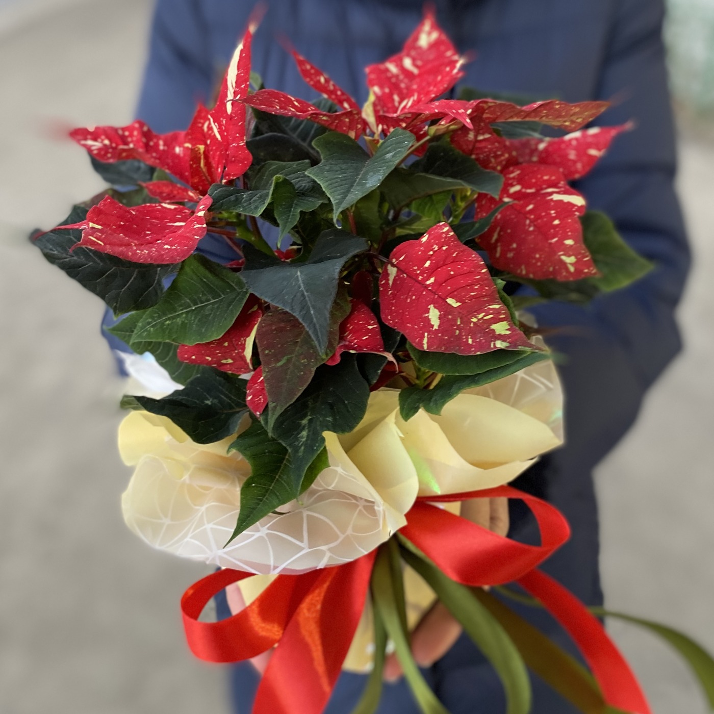 Пуансеттия красно-белая - Цветок Рождественская звезда
