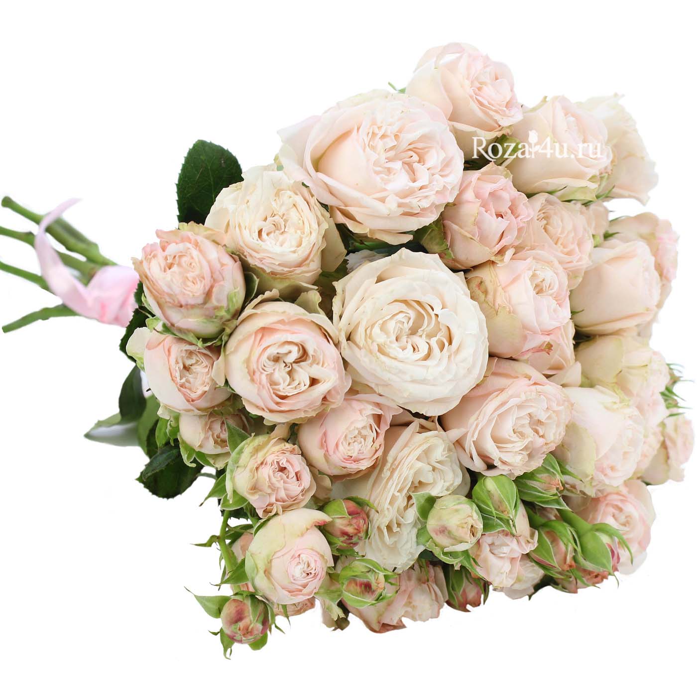 Кустовая пионовидная роза Бомбастик (Bombastic) — махровые шаровидные бутоны с многочисленными слоями лепестков. Эти цветы обладают невероятно изысканным цветом — светлый кремовым с мягким розовым оттенком. Мы предлагаем собрать из роз Бомбастик любой интересующий вас букет. Такая композиция буквально излучает изысканность, изобилие и романтику, создаёт впечатление роскоши и элегантности, радости и счастья. Это прекрасный выбор для любимого человека, мамы, подруги.