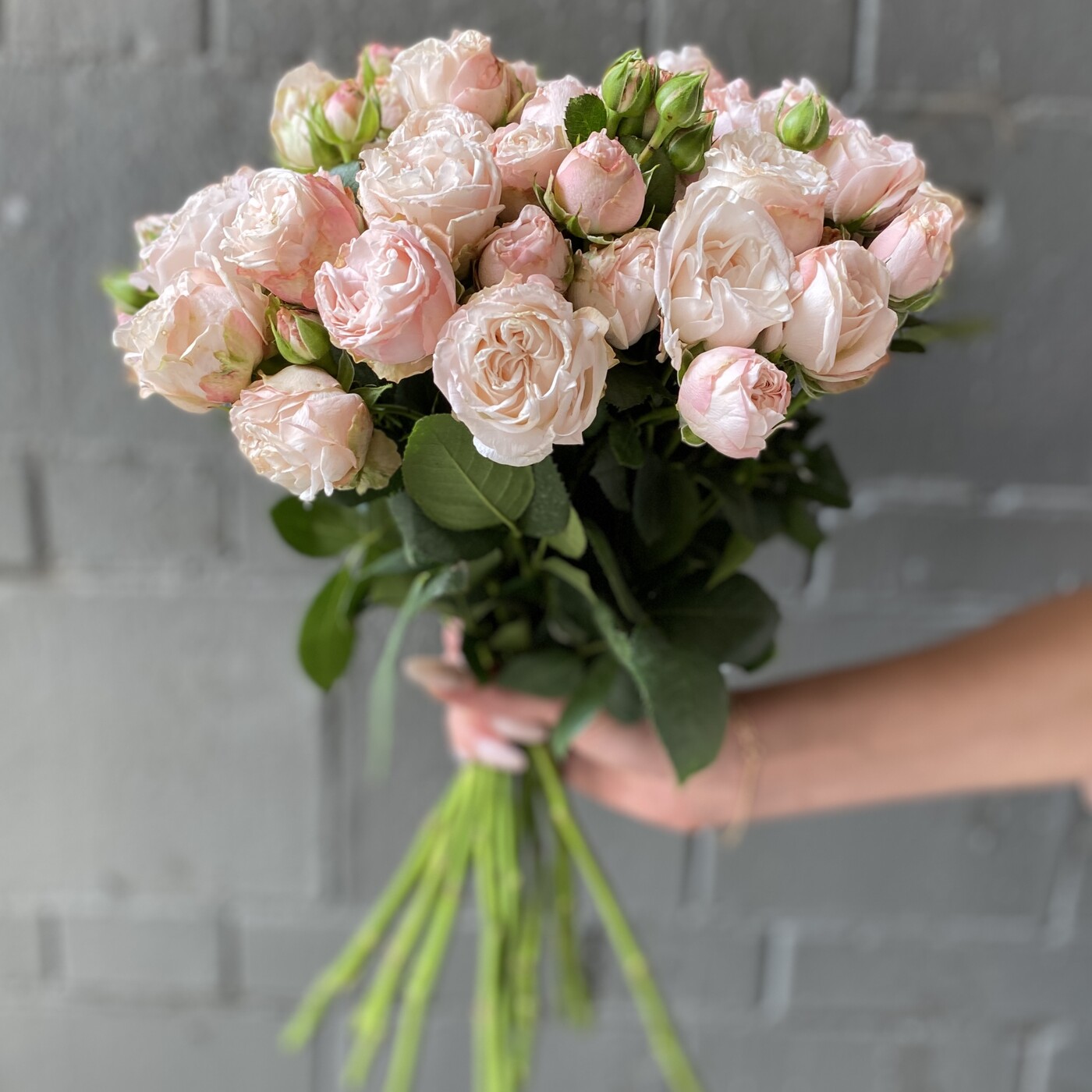 Состав на фото: 15 веток пионовидной розы сорт Бомбастик (Bombastic)
