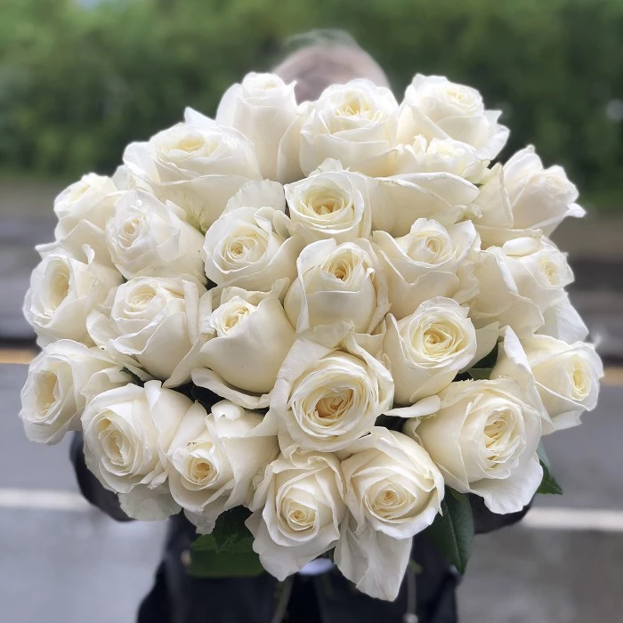 Елена о заказе: 51 белая роза в корзинеСпасибо за своевременную доставку, хорошие гвоздики как с грядки. 100. Курьеру отдельное спасибо