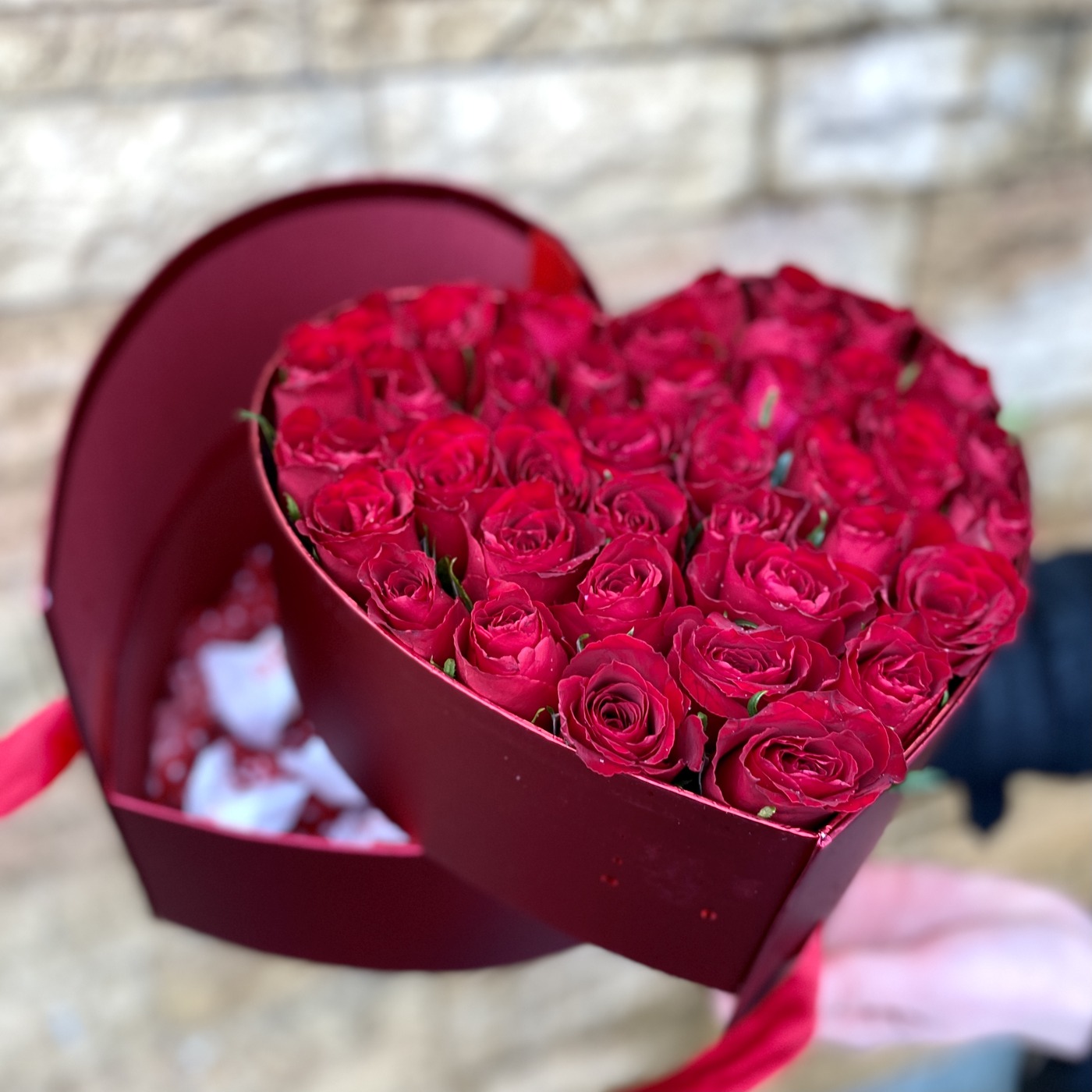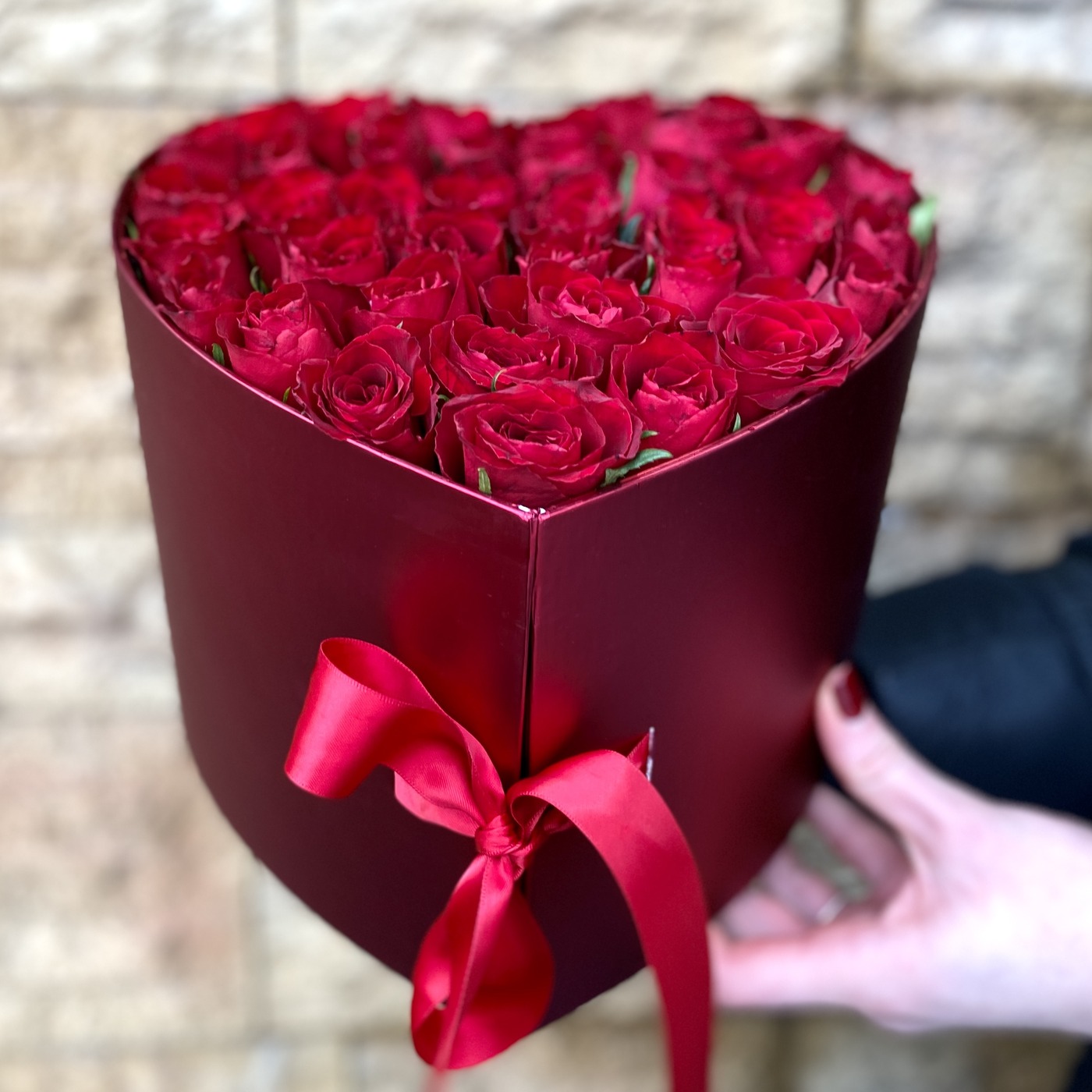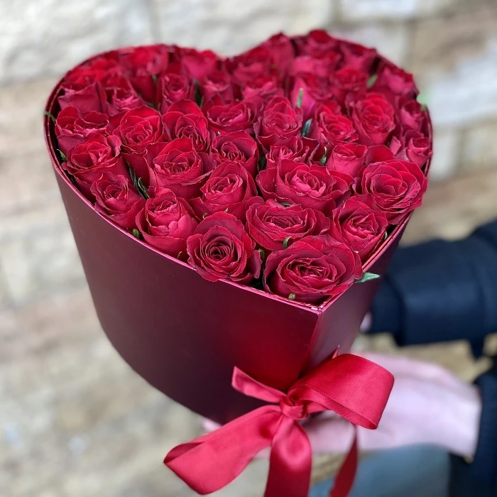 Красные розы — по-особенному привлекательные цветы с крупными и пышными лепестками. Если у вас возникло желание подарить любимой женщине настоящие эмоции, покорить её сердце и удивить, тогда стоит выбрать букет из таких красных роз. Композиция размещена в аккуратной шкатулке, выполненной в форме сердца.
