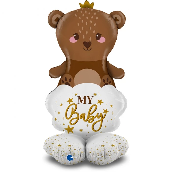 Шар Фигура на подставке Медвежонок для малыша, прекрасно дополнит ваш букет и создаст праздничное настроение.