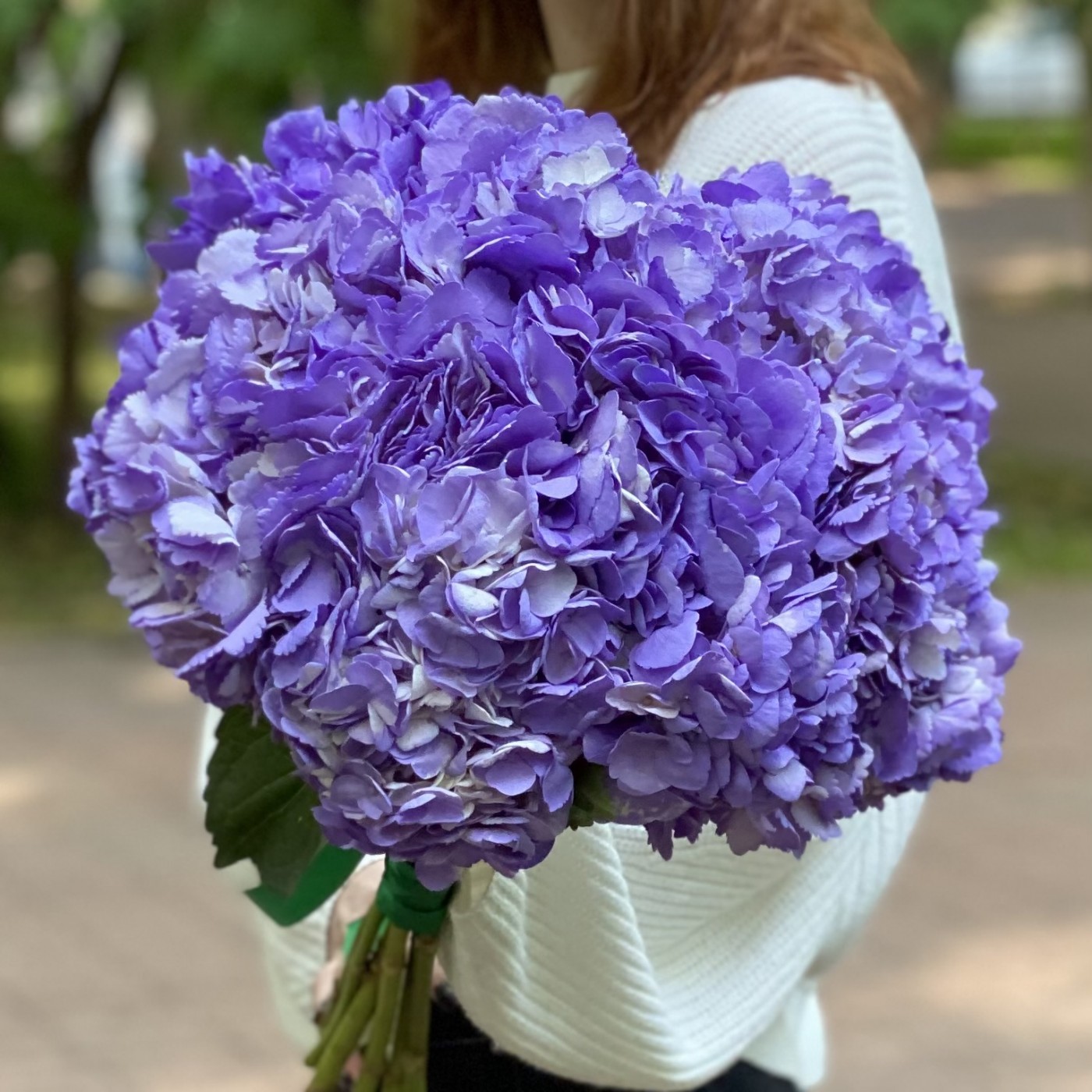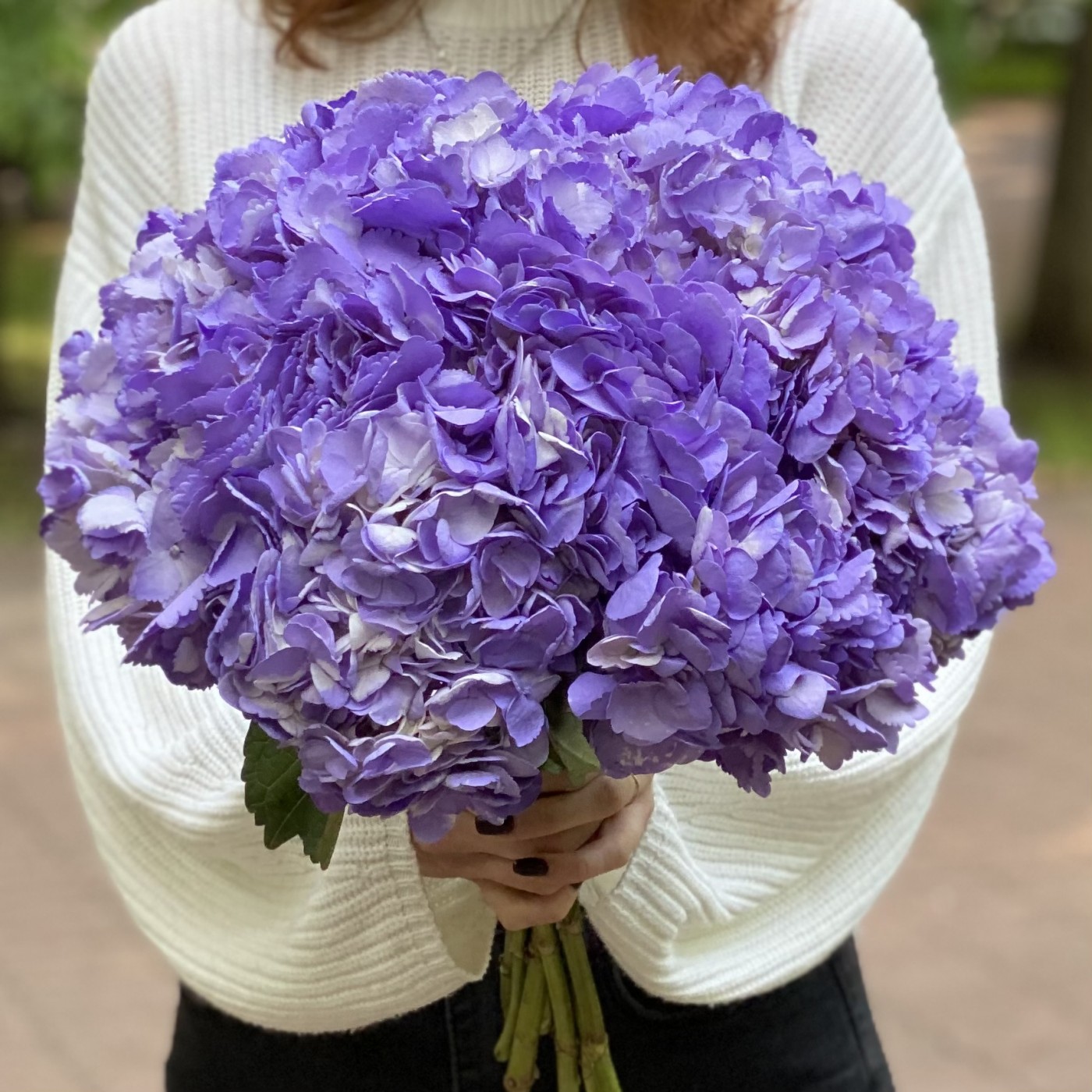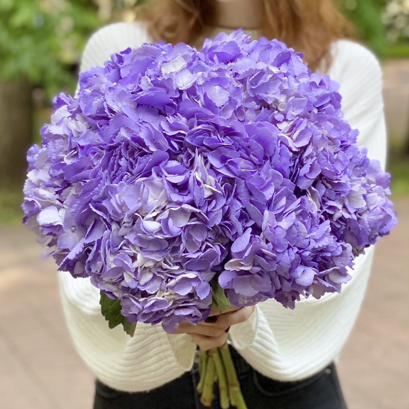 Сиреневые гортензии, используемые в наших букетах - пушистые как облако ароматные соцветия с сотнями лепестков.