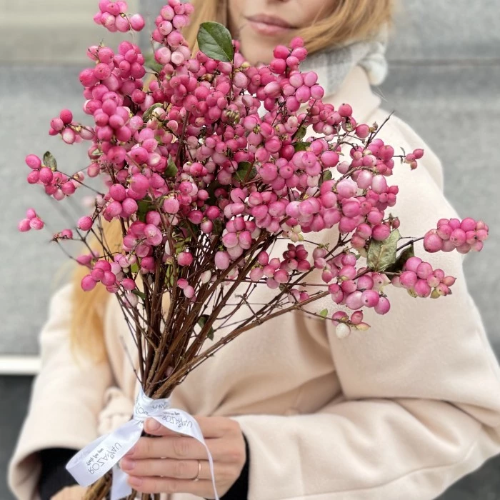 Снежноягодник розовый — это стильный и интересный элемент, который может украсить как интерьер, так и цветочные композиции, добавляя им особую привлекательность.