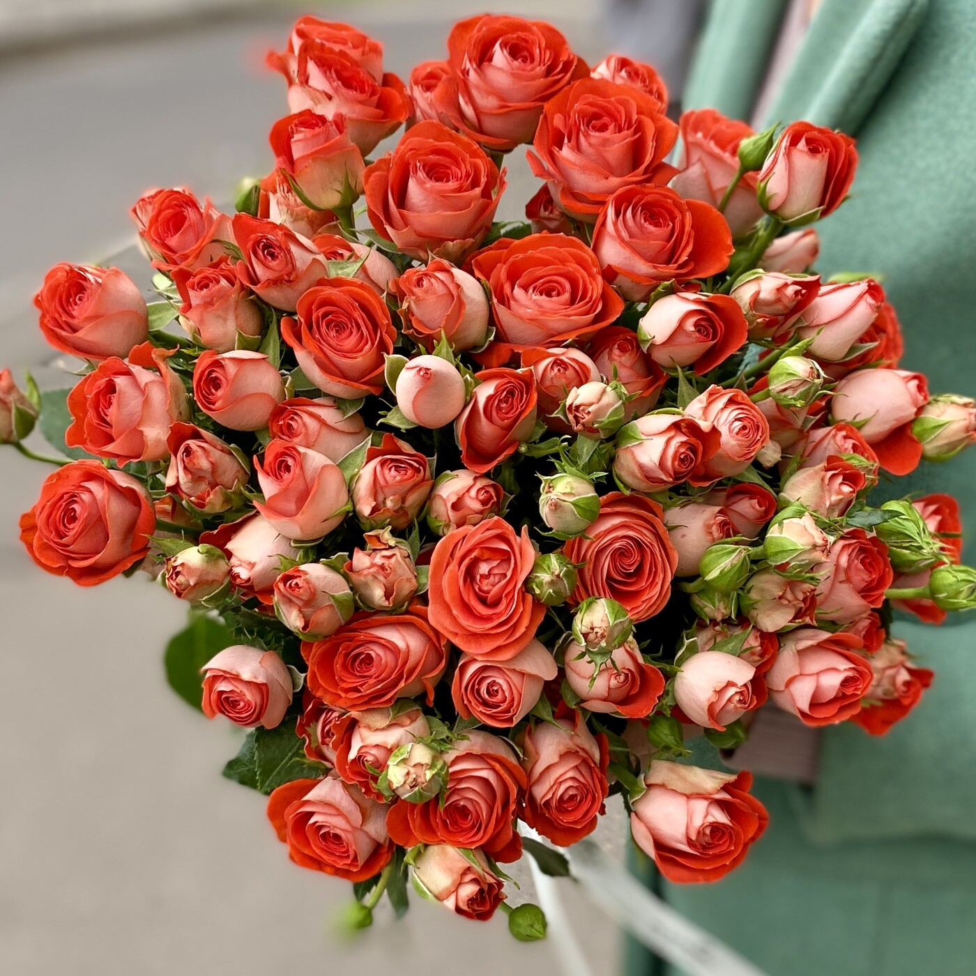 Анна о заказе: 51 малиновая розаСпасибо! Букет великолепный! Цветы свежайшие, упругие, очень красивые, крупные. Добавлено 4 коралловые розы и зелень