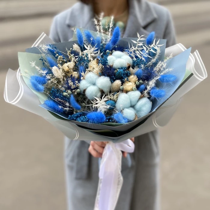 Нежная, объемная, стильная, а главное вченая композиция из необыкновенных сухоцветов станет приятным и незабываемым комплиментом для ребенка или молодой мечтательной девушки.