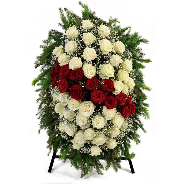 На фото представлен венок высотой 100 см. (с учетом высоты каркаса), ширина 70 см.